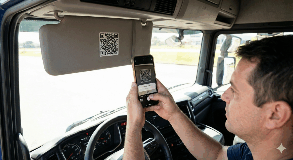 Antes de iniciar a jornada, o motorista realiza sua identificação por meio do aplicativo ou de um cartão RFID. Assim, todos os eventos de condução — como velocidades, multas, comportamento ao volante e dados de telemetria — são atribuídos ao condutor correto.